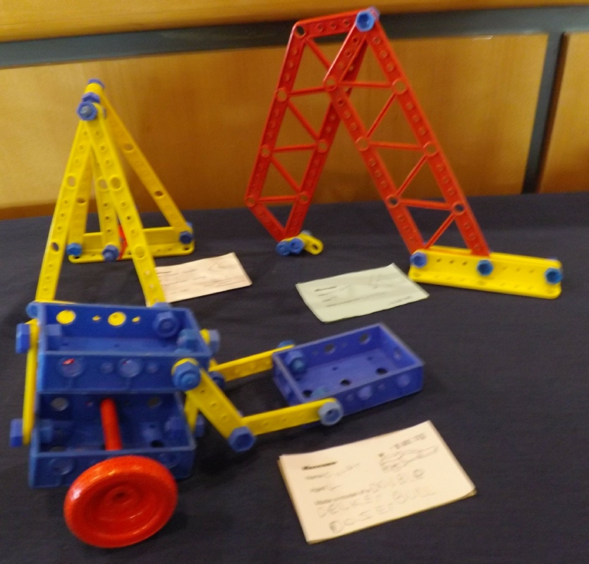 4 members attended. We were rather short of tables. The room to which we were allocated was one had housed part of the library but was no longer in use. We were able to use the empty shelves for both the models constructed in the Plastic Meccano Workshop and some of those, mostly interactive, brought for display. We were provided with suitable refreshments and help packing up and loading our cars.