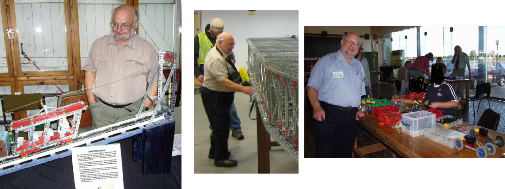 Our former Chairman and active member Frank Smith died recently. His cheerful presence and his numerous stories will be remembered for many years. He built numerous interesting models. Many contained parts, which Binns Road did not get round to making, made in his extensive, well equipped workshop. It is unfortunate that hardy any photographs are available at present. The picture on the left shows him at Ellesmere Port Canal Museum. He was also involved with James May’s Meccano Bridge. of his contribution and some of the photographs which he took have been added to this web-site. Click Here